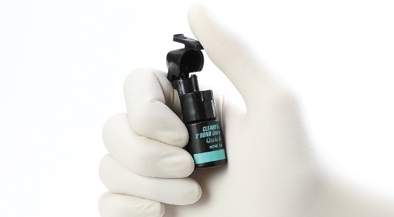 CLEARFIL™ TRI-S BOND Universal Quick is a single-bottle, universal adhesive with the new original MDP & AMIDE-based chemistry that provides a unique RAPID BOND TECHNOLOGY. This new AMIDE monomer rapidly permeates dentin & enamel which eliminates waiting time & dramatically reduces water absorption. It also reduces technique sensitivity & application time without compromising bond strengths, sealing or desensitizing. CLEARFIL™ TRI-S BOND Universal Quick can be mixed with CLEARFIL™ DC Activator to become a dual-cure adhesive, thereby making this product truly “Universal” for all etching and restorative needs. *1