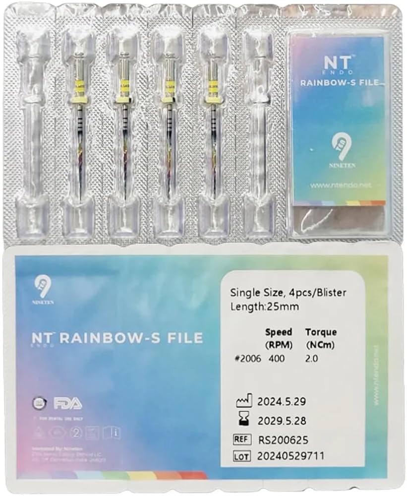 The Kinetic Rainbow S is a premium, multi-colored heat-activated Nickel-Titanium (NiTi) rotary file. It is specifically engineered with an upgraded "Ultra-thin S Section" to provide maximum cutting efficiency while maintaining extreme flexibility. The "Rainbow" finish indicates a specialized thermal treatment that optimizes the metal's molecular structure for navigating complex canal curvatures with minimal resistance.